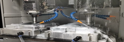 高速雙主軸鉆攻中心 YHCS-4050/4050A,機床配置雙刀庫,提高加工刀具使用效率,有利于復雜零件多工序加工。機床配置雙高速主軸,可一次性加工兩個相同零件,提高100%加工效率。適用于新能源汽車、LED、3C、通訊、五金等精密零件加工。