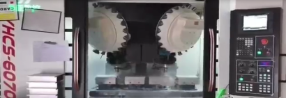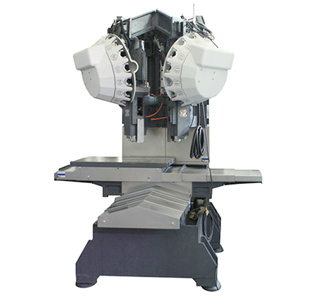 高速雙主軸鉆攻中心YHCS-6070,機(jī)床配置雙刀庫,提高加工刀具使用效率,有利于復(fù)雜零件多工序加工。機(jī)床配置雙高速主軸,可一次性加工兩個(gè)相同零件,提高100%加工效率。