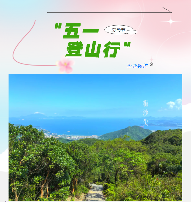 五月,是揮灑汗水的季節(jié),更是致敬奮斗者的時節(jié)。在五一勞動節(jié)來臨之際,華亞數(shù)控積極踐行企業(yè)文化,工會組織假日期間未回家的員工開展了一場別開生面的登山活動,“茶溪谷-梅沙尖-大華興寺”徒步之旅。以一場充滿激情與挑戰(zhàn)的戶外之旅,展現(xiàn)團(tuán)隊風(fēng)采,傳承勞動精神。